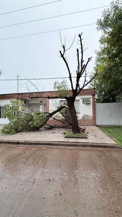 Con las primeras ráfagas de viento de la tormenta de esta madrugada, alrededor de las doce de la noche ya había colapsado este poste de madera con su correspondiente tendido de cable, ubicado sobre calle Las Heras al 2000. Vecinos manifiestan su preocupación por el peligro que representa al haber quedado el poste cruzado prácticamente sobre la calle. Se desconoce por el momento si pertenece a EPE o TELECOM.