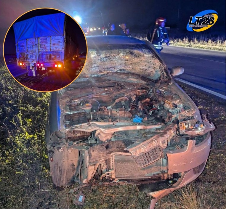 Por causas q se tratan de establecer un auto que se dirigía de sur a norte impacto la parte trasera de un camión cerealero que se dirigía en el mismo sentido.