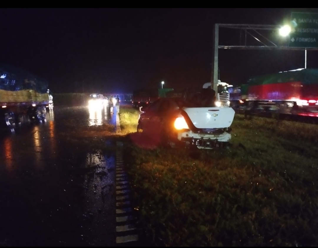 En horas de la noche de este sábado, siendo las 22:10 hs se produjo un accidente de tránsito en Autopista Brigadier Estanislao López en el kilómetro 97, cuando arribó personal policial de la comisaría local pudo observar sobre cantero central un vehículo Chevrolet Prisma Joy, y dentro del mismo se encontraba el conductor del automóvil, un hombre de 39 años oriundo de Buenos Aires quien manifiesta que venía circulando por la mano Rosario Santa Fe y al agarrar un espejo de agua, perdió el control de su conducido e impactó sobre la malla de protección ( guardarrail ), el mismo se encontraba junto a su esposa de 35 años y sus dos hijos de 8 años y 5 meses de edad.