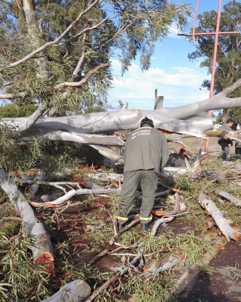 Las ráfagas de casi 100 km/h, que azotaron a la capital santiagueña, provocaron importantes daños en distintos puntos.