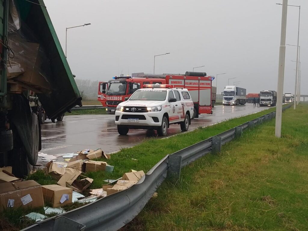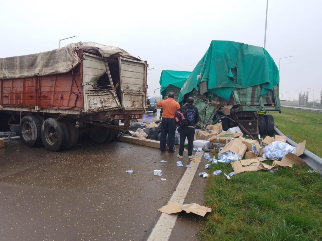 ATENCION: Autopista Rosario-Córdoba cortada desde Ruta 15 hacia Tortugas por un accidente entre dos camiones que quedaron cruzados.