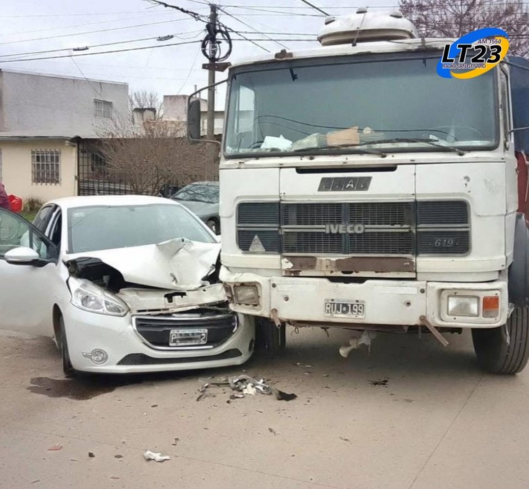 Alrededor de las 12.30, en Saavedra y Dimmer chocaron un automóvil y un camión, resultando con golpes la tripulante del auto.