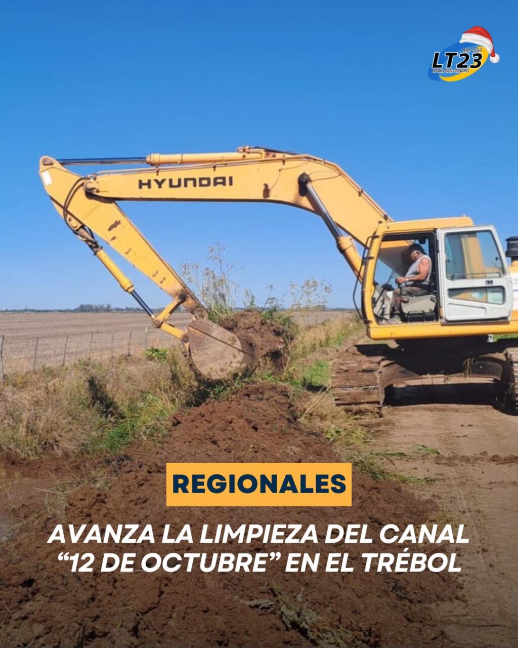 La Municipalidad de El Trébol avanza con tareas de limpieza y mantenimiento del Canal “12 de Octubre” para mejorar el escurrimiento del agua y prevenir anegamientos. Los trabajos incluyen la remoción de vegetación que obstruye el canal y ya abarcan unos 2.000 metros de los 9.000 previstos, con continuidad hasta la Ruta Provincial Nº 13. Estas acciones forman parte de un plan preventivo para el mantenimiento de desagües y el cuidado de la ciudad