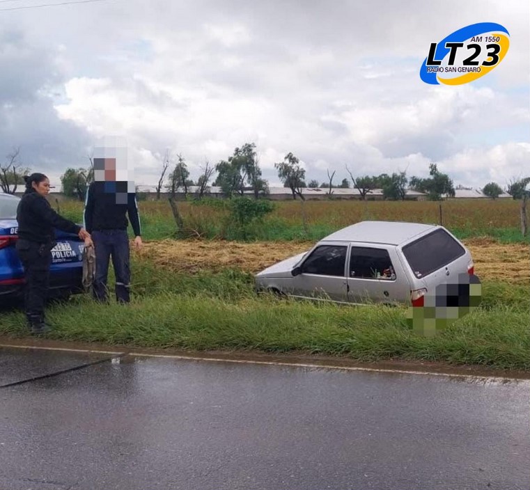 El personal policial se acercó al lugar donde entrevistó a un joven de 24 años, de esta localidad, quien conducía el automóvil marca Fiat Uno, color gris, manifestando el mismo que se encontraba circulando por la mencionada arteria de Sur a Norte para presentarse en su trabajo, por lo que perdió el control del vehículo debido al agua de la calzada despistando sin intervención de terceros.