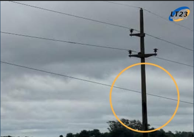Este cable de media tensión que corre paralelo a la Ruta N 34 se cayó por el fuerte viento. El mismo se ubica desde el kilómetro 46 a 47 de la mencionada Ruta. Luego de pasar la tradicional “ curva de Castagno” desde Rosario hacia Totoras. Fuente: ETL NOTICIAS