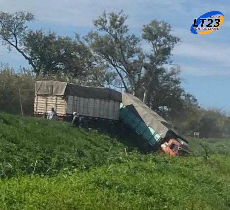 Un camión volcó en el conducto pluvial paralelo a la ruta.