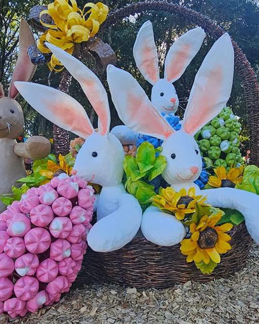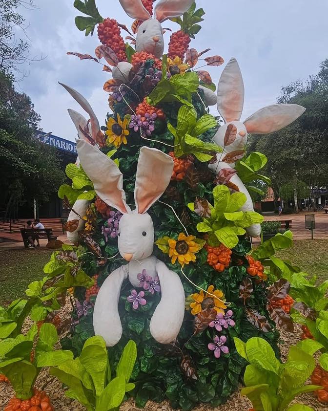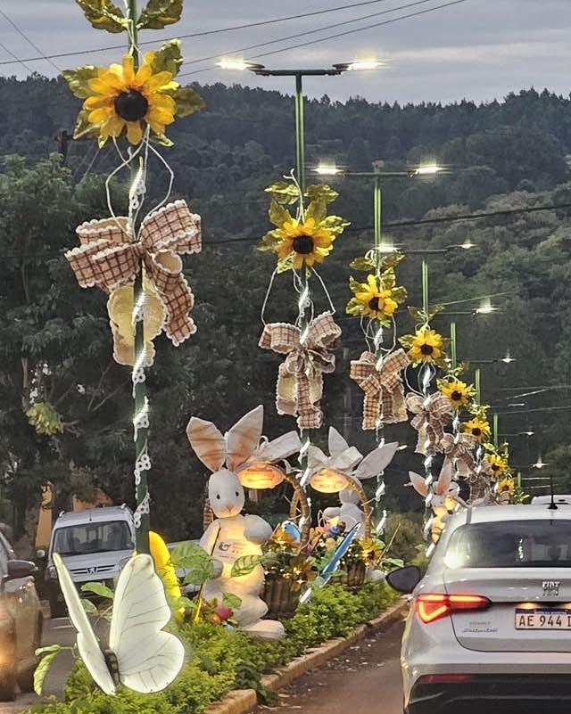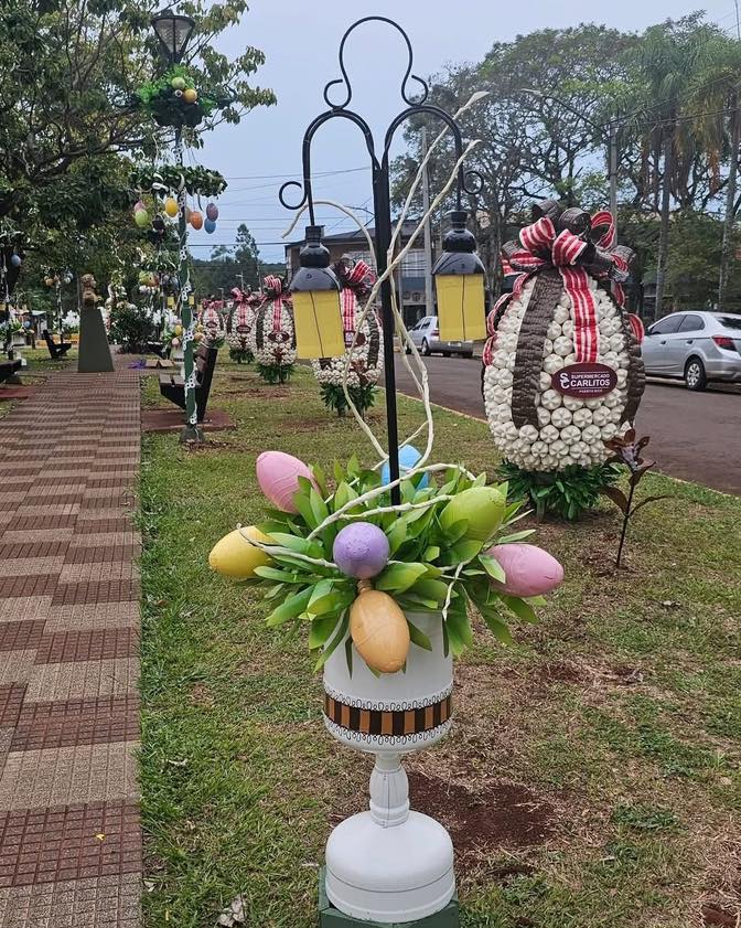 Huevos gigantes, simpáticos conejos y coloridos detalles se multiplican por las calles de la ciudad, todos creados a partir de botellas plásticas y otros elementos reciclados, en una tradición que no sólo embellece el pueblo, sino que también promueve el cuidado del ambiente.
