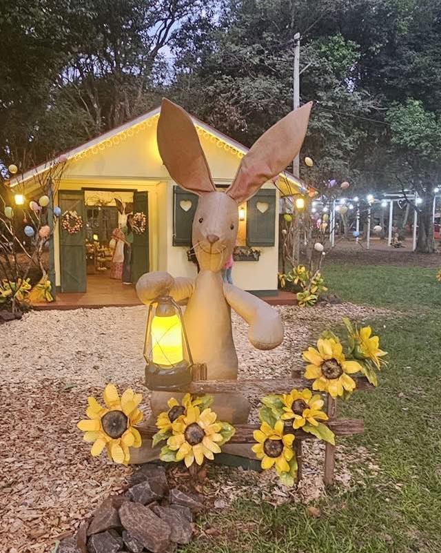 Apenas finalizada la temporada de Navidad, y con las estructuras desmontadas, los vecinos comenzaron una nueva etapa de trabajo: reutilizar los mismos materiales para dar vida a una nueva escenografía, esta vez inspirada en la Pascua.