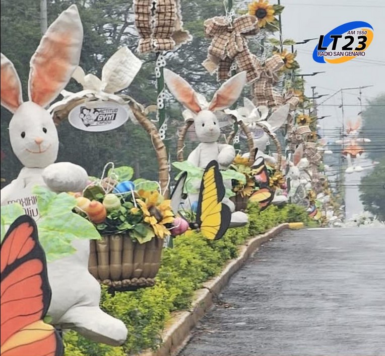 Huevos gigantes, simpáticos conejos y coloridos detalles se multiplican por las calles de la ciudad, todos creados a partir de botellas plásticas y otros elementos reciclados, en una tradición que no sólo embellece el pueblo, sino que también promueve el cuidado del ambiente.