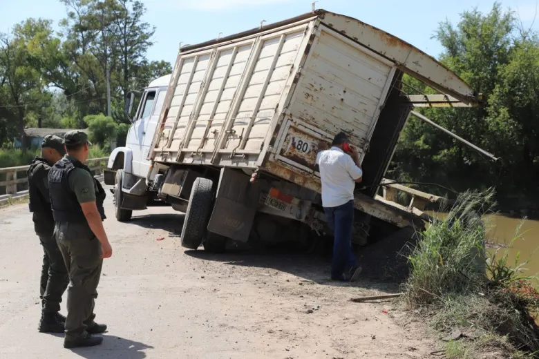Un camión habría sufrido una falla en los frenos y terminó impactando contra el montículo de tierra en el acceso al puente sobre el río Carcarañá, sobre la Ruta Nacional 9. Circulaba de oeste a este.El camión quedó cruzado en la calzada.