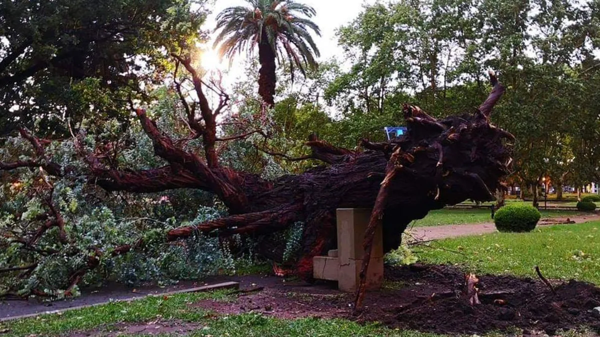 Árboles caídos de gran porte en distintos puntos de la ciudad. Además columnas de alumbrado sobre Bv. L. de la Torre altura calle Belgrano.Dia7