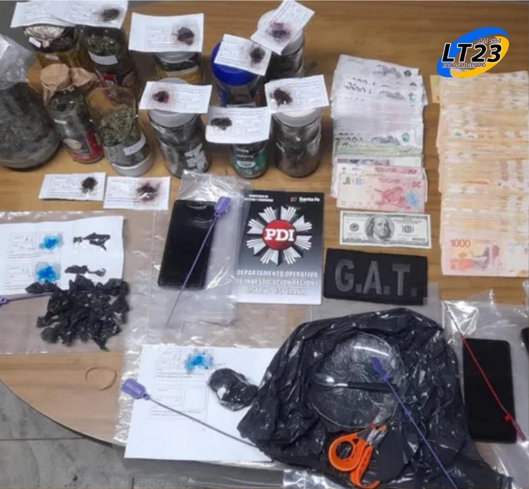 El allanamiento se llevó a cabo en una vivienda ubicada sobre calle Scalabrini Ortiz al 900, donde los investigadores hallaron 68 dosis de cocaína y 457 dosis de marihuana, todas fraccionadas y listas para su comercialización. Además, secuestraron más de $1.700.000 en efectivo, un billete de 100 dólares, tres teléfonos celulares y varias agendas con nombres, apellidos y apodos de clientes habituales.