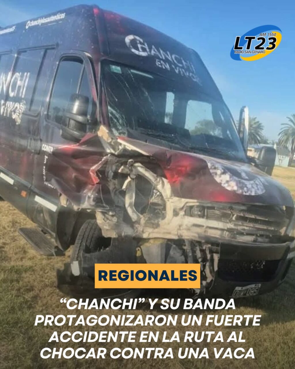 Integrantes del grupo “Chanchi y los Auténticos” vivieron un momento dramático esta madrugada cuando la traffic en la que viajaban impactó contra un novillo en la Ruta 34.