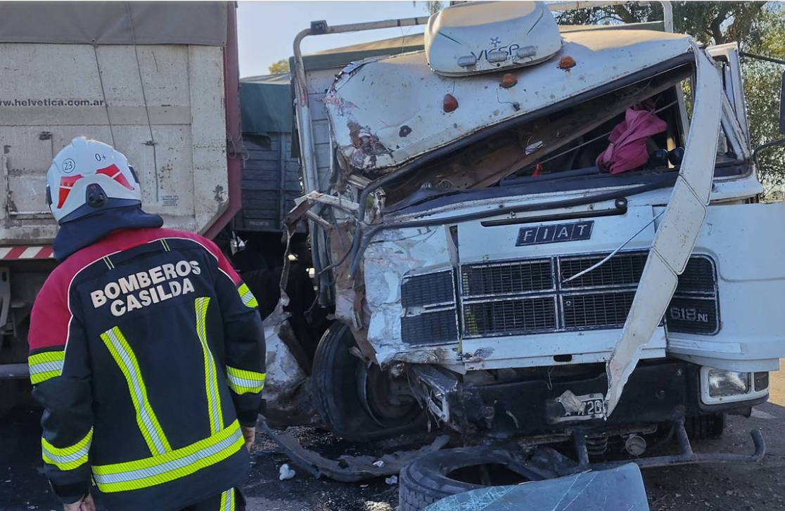 Un siniestro vial se registró este jueves en la Ruta Nacional 33, a la altura del kilómetro 745, en jurisdicción de Casilda, donde dos camiones con chasis y acoplado que circulaban en sentidos opuestos colisionaron por causas que aún se investigan.