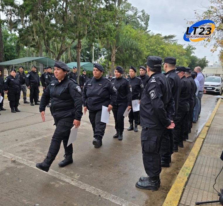 Luego se recibieron palabras alusivas del Cura Parroco Sergio Capocceti, de la Iglesia San Jerónimo, quien además hizo bendiciones de placa, siguiendo con la actividad de la ceremonia, las autoridades máximas de la URXV, juntamente con los Señores Coordinadores Operativos de la Secretaria de Seguridad Publica Director de Policía Claudio Blazer y Subdirector de Policía Luis Acosta, hicieron entrega de un reconocimiento a mas de cuarenta miembros del Comando Radioeléctrico Coronda, además hubo un reconocimientos especiales, a miembros de la fuerza policial, activos y retirados, por su paso por esta URXV Depto San Jerónimo.
