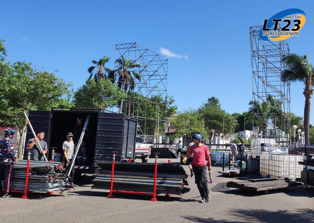 En estos momentos se encuentran llevando adelante los trabajos de armado del escenario principal para vivir la 65° Fiesta Nacional de la Frutilla! Este sábado 9/11 el show de Emanero y Mario Pereyra. Recordamos que mañana desde las 9, Leonel y Pipo hacen PARA TODOS desde Coronda.