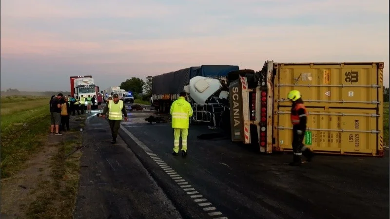 A la altura de Baradero, dos camiones colisionaron y uno de ellos terminó volcado sobre la ruta, en el kilómetro 143. Uno de los conductores resultó lesionado. Hay un corte total del tránsito