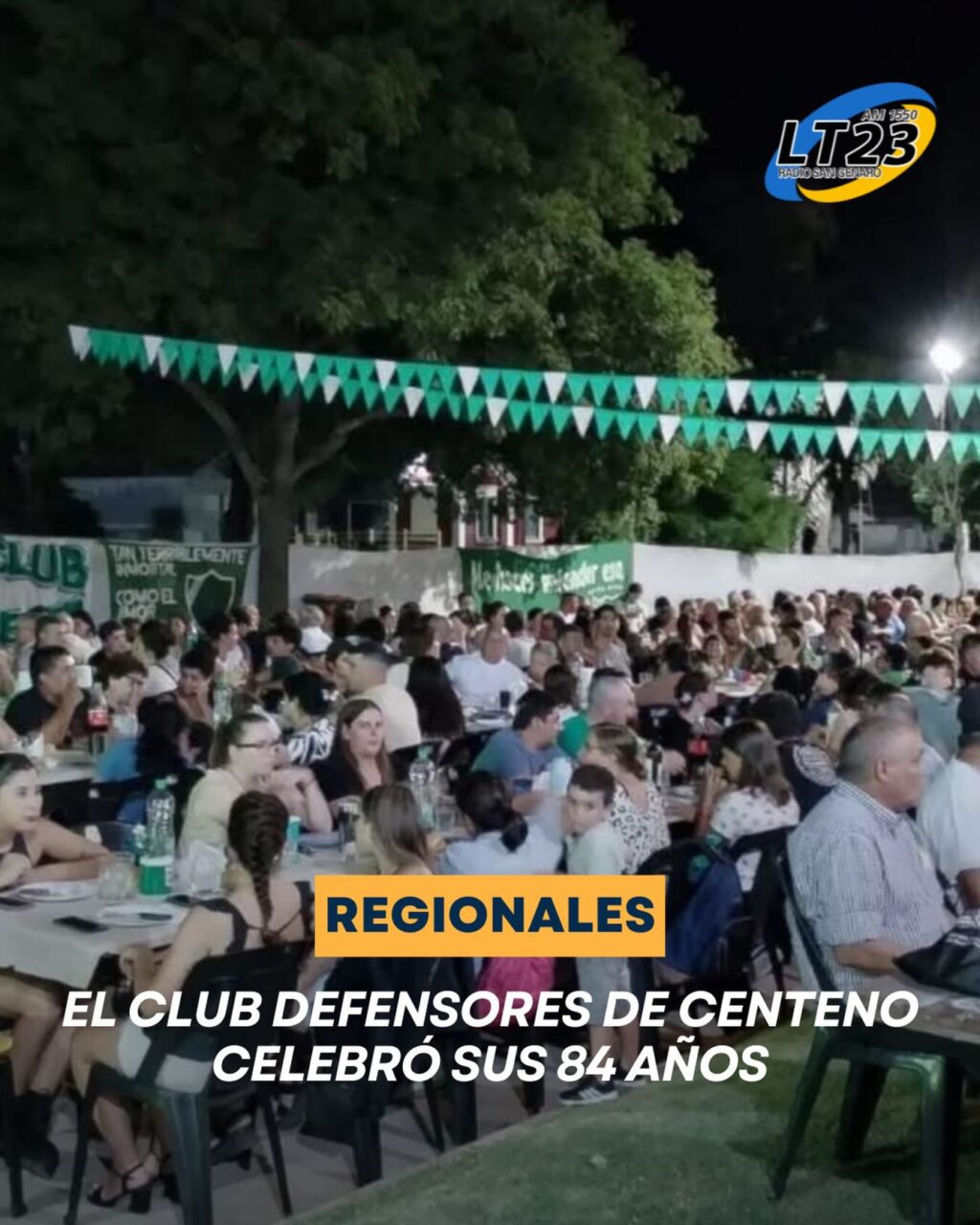 Este sábado por la noche se desarrolló la “Cena 84 Aniversario del Club Atlético Defensores de Centeno”. Participaron de la misma más de 400 personas en la calle frente al gimnasio. En la ovación se realizó el