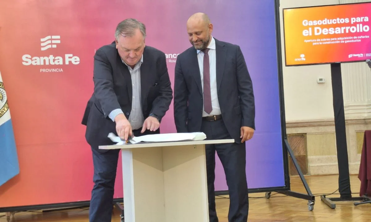 En el Salón Blanco de la Casa de Gobierno de la ciudad de Rosario, se llevó a cabo el acto de apertura de sobres correspondiente a la Licitación Pública N° 03/24 del Plan de Gasoductos para el Desarrollo de Santa Fe, destinado a la adquisición de cañerías para las distintas etapas del proyecto. El presupuesto oficial asciende a $15.508.536.221 (impuestos incluidos).