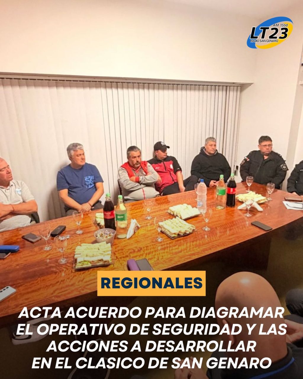 El Intendente Gastón Marconcini se reunió con representantes del Club Sportivo Rivadavia y el Club Atlético San Genaro, autoridades policiales e inspectores de tránsito, para diagramar las acciones a desarrollar de cara a un nuevo clásico de fútbol, que se llevará a cabo el próximo domingo en el Club Sportivo Rivadavia.