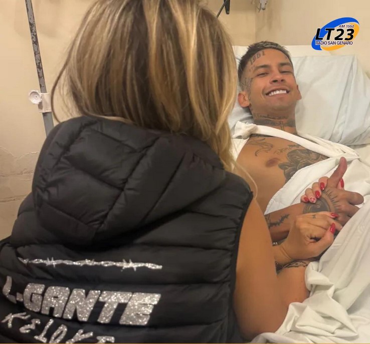 Tras la dura caída, L-Gante acusaba fuertes dolores y fue acompañado por Wanda al centro médico. La propia novia del artista se ocupó de dar a conocer cómo estaba el joven.