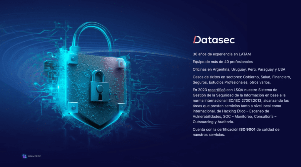 Universe suma a Datasec a su porfolio de empresas en ciberseguridad. La firma ofrecerá escaneo de vulnerabilidades & hacking ético, monitoreo y servicios integrales de GSI & Ciberseguridad.