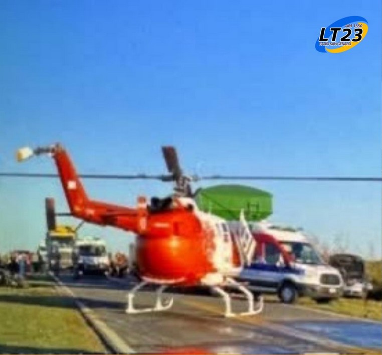 Se abocan a las tareas de atención de la persona lesionada y luego toman conocimiento que una menor de 2 años y el conductor del rodado ya habían sido trasladados a Casilda en ambulancia. El paciente que se encontraba sobre el vehículo accidentado fue trasladado por el helicóptero de UTV al HECA de Rosario, presentando una posible fractura en la rodilla, tendencia al sueño y pulso débil.