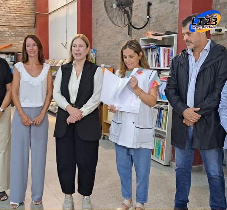 La vicegobernadora Gisela Scaglia, acompañada por el senador Leonardo Diana, el concejal Jeremías Fantino y Virginia Vottero, hizo entrega de $9.587.000 del Fondo FANI a la Escuela Primaria N° 877 «Domingo Faustino Sarmiento» de Gálvez, recibido por su directora Silvia Rodríguez.