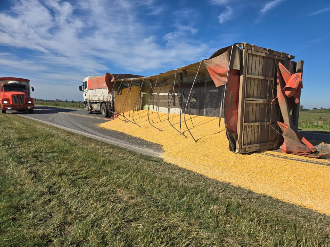 Gálvez: Un camión volcó su acoplado cargado de cereal en ruta 10, a la altura de la curva «del basural».