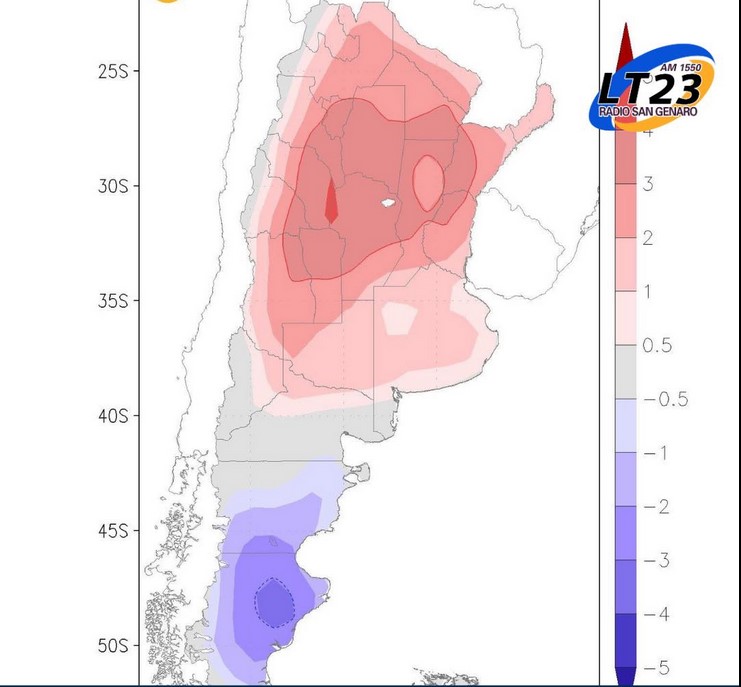 Mientras que en el norte la ola de calor no afloja con temperaturas superiores a los 35 °C , en el sur del país, el aire frío deja valores de hasta 3 °C por debajo de lo normal.
