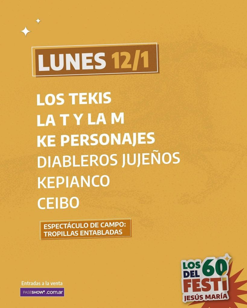 * Lunes 12: Platea A $200.000 / Platea B $170.000