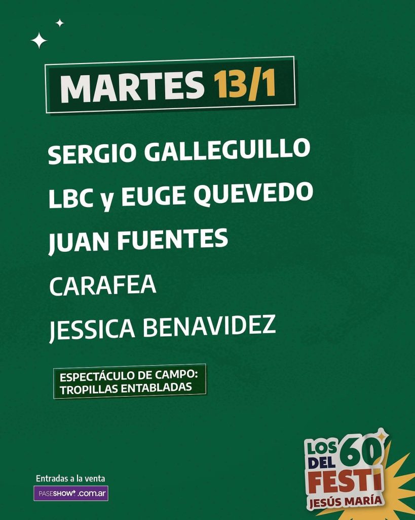 * Martes 13: Platea A $150.000 / Platea B $120.000