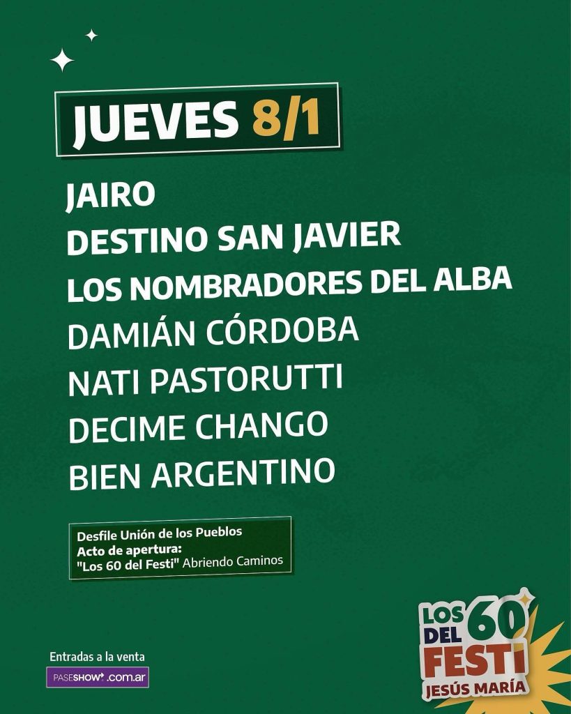* Jueves 15: Platea A $180.000 / Platea B $150.000