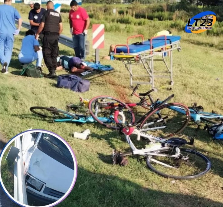 Impactante accidente en la autopista: una traffic embistió a cuatro ciclistas a la altura de Roldan