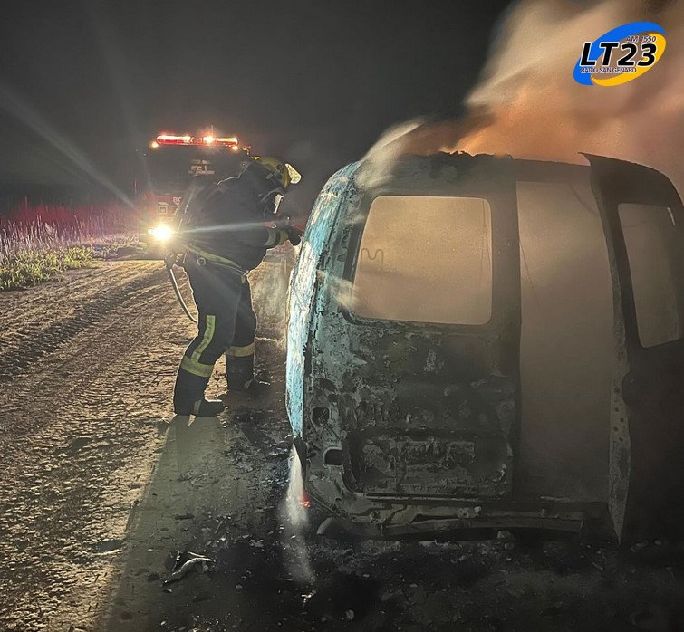 Ayer a las 20:30 horas, Bomberos Voluntarios fueron alertados por un incendio de un vehículo en la zona rural conocida como Bajo de los Leones, al norte de la ciudad, camino de tierra hacia Las Parejas.