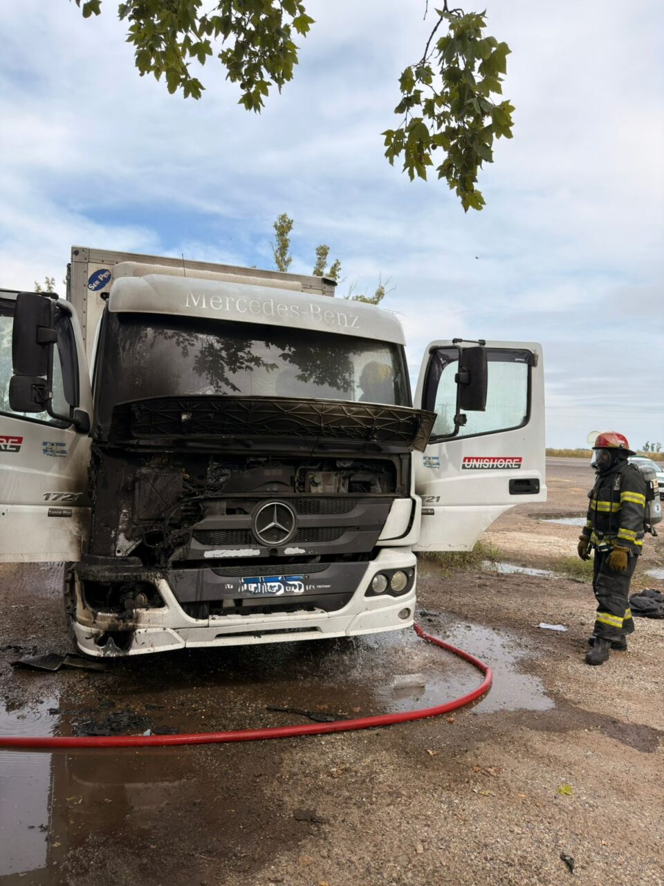 Un incendio se registró este lunes en la localidad de Larguía, cuando un camión sufrió un foco ígneo en la cabina mientras se encontraba en circulación.
