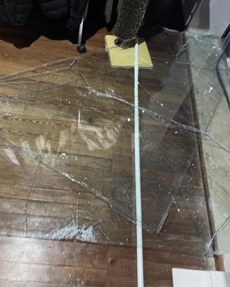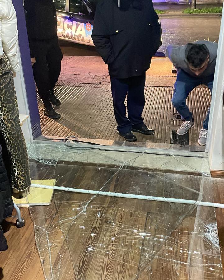 Los delincuentes lograron romper por completo la vidriera principal usando barretas.