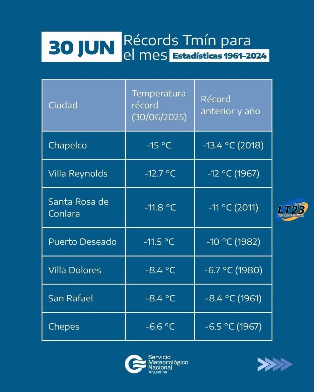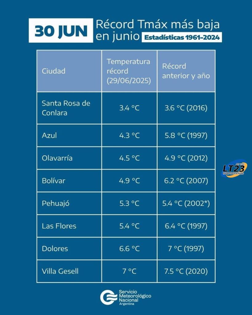 Conocé los récords de temperaturas mínimas y máximas más bajas del país.