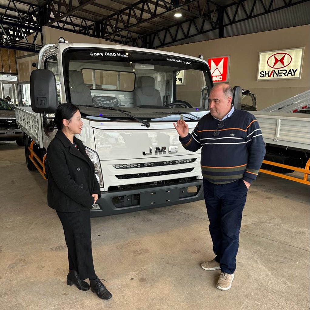 Recorrieron las nuevas instalaciones pensadas y desarrolladas para promocionar la venta de los utilitarios JMC y en su charlas Camelia comentó sobre su posicionamiento a nivel GLOBAL, con su capacidad productiva de 400.000 vehículos al año, teniendo un significativo liderazgo en ventas sobre diferentes piases y segmentos, haciendo hincapié en la futura producción argentina