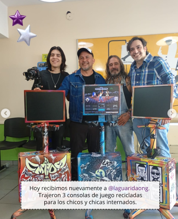 Durante la visita, los músicos compartieron un momento especial con niños internados y realizaron la donación de consolas de videojuegos, con el objetivo de brindarles entretenimiento y hacer más llevadera su estadía.