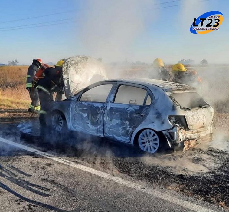 Bomberos de Las Rosas fueron alertados por el incendio de un vehículo en ruta 65, en dirección a la localidad de Bouquet.