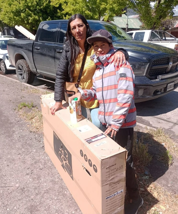 Mateo recibió una nueva bicicleta. Y está feliz. “No me dejaban contar nada”, nos contó la mamá mientras nos enviaba los videos “pero quería agradecerles por todo y a