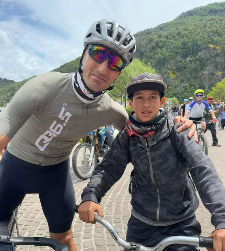 Un joven llamado Mateo conoció a Lionel Scaloni, el entrenador de la selección argentina de fútbol, durante la Gran Fondo 7 Lagos en San Martín de los Andes. Mateo estaba emocionado de conocer a su ídolo y Lito Oviedo preparador físico, corredor de ciclismo y el líder del Oviedo Teams del que formaban parte Scaloni, le tomó algunas fotos.