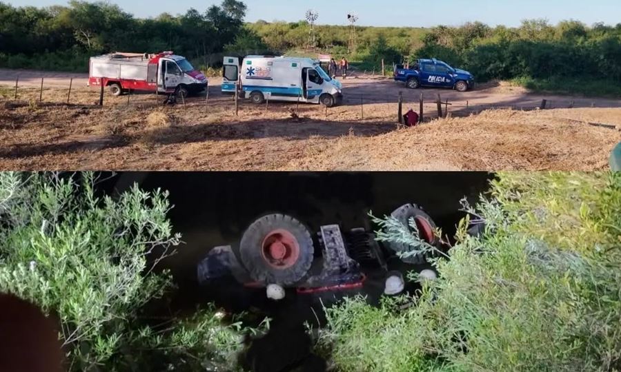 Tras un llamado telefonico, personal de la Comisaría 7ma. Se encontró con una maquina cargadora frontal dentro de una represa, y el conductor debajo de la misma.