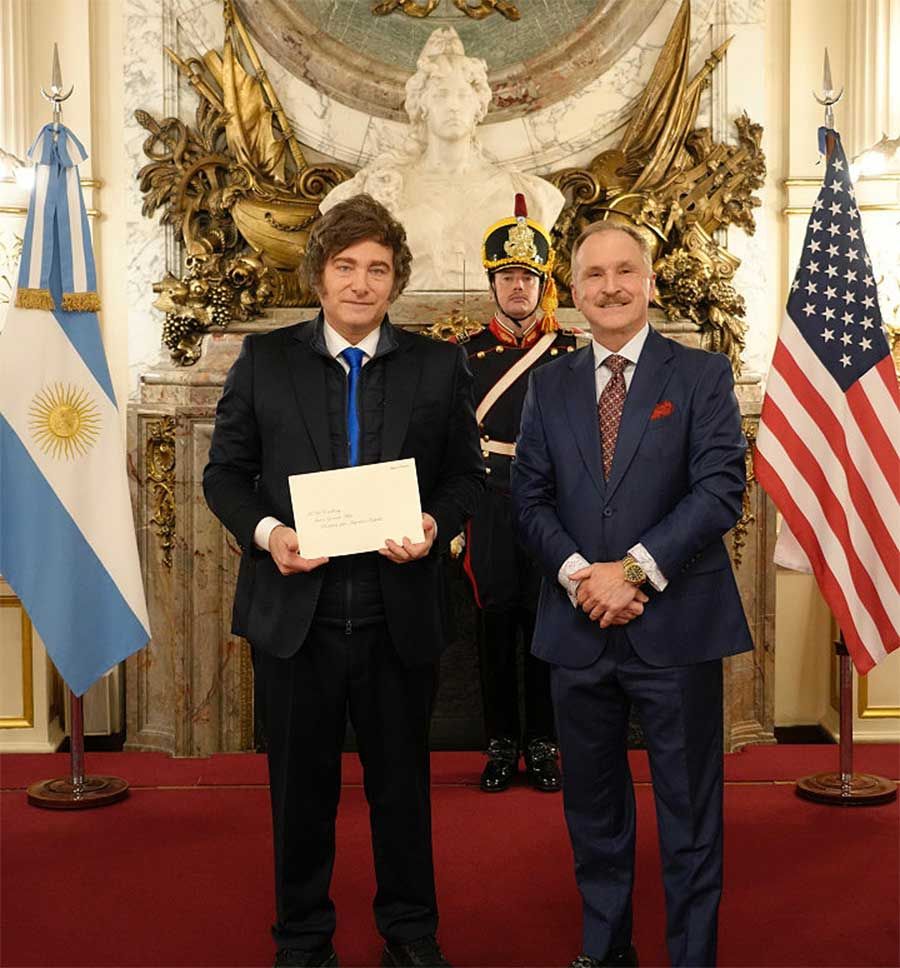 El presidente recibió en Casa Rosada a Peter Lamelas, quien asumió recientemente como embajador.