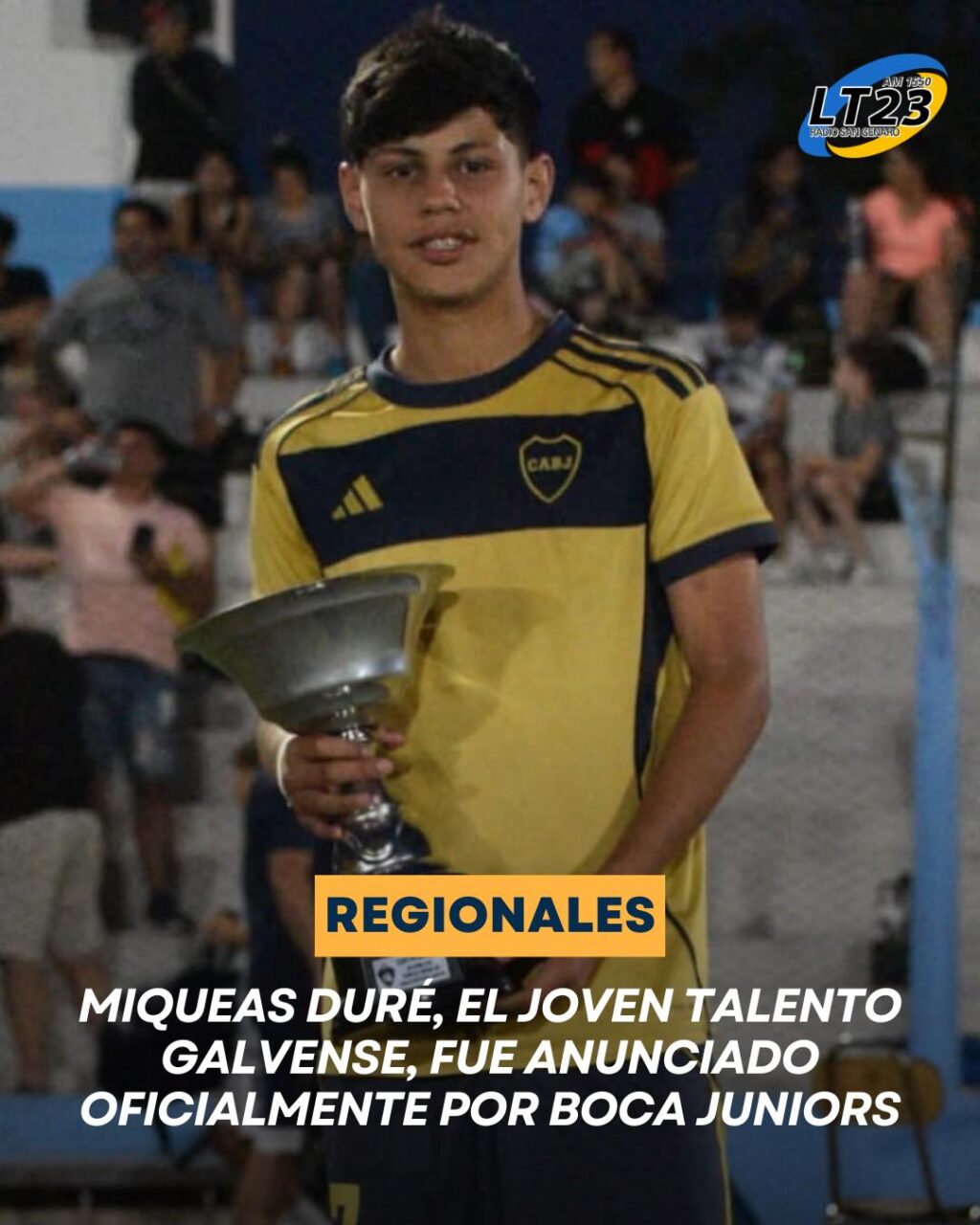 El joven galvense Miqueas Duré, quien desde hace meses viajaba de manera frecuente a Buenos Aires para participar de entrenamientos y evaluaciones en Boca Juniors, recibió finalmente la confirmación que esperaba: fue anunciado oficialmente y se radicará en la pensión del club.