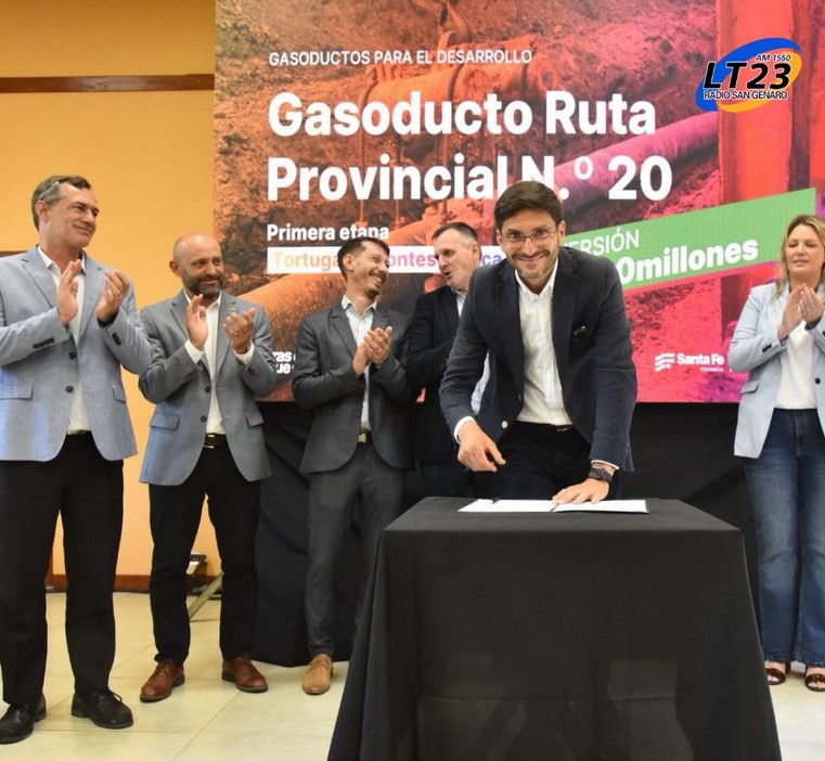 En el marco de la ejecución de la primera etapa del Plan de Gasoductos para el Desarrollo, que lleva adelante el Gobierno Provincial, este martes el gobernador Maximiliano Pullaro firmó el inició de obra del gasoducto Ruta Provincial 20, que será ejecutado por la unión transitoria de empresas conformada por Peitel SA-Rovial SA, por un monto total de $ 7.830.000.000.
