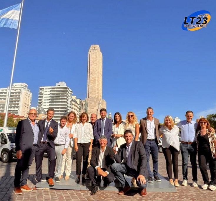 El senador Hugo Jesús Rasetto, junto a intentes y presidentes comunales de las localidades y representantes de los Servicios de Atención Médica Comunitaria (SAMCOs) y el hospital de Iriondo, estuvo presente en el Monumento Nacional a la Bandera para recibir las flamantes ambulancias y minibuses.
