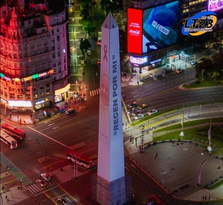 La Ciudad de Buenos Aires rindió tributo al Sumo Pontífice con una proyección en el Obelisco. Su imagen fue acompañada por la frase “Recen por mí”. También se leyó un mensaje de despedida: “Francisco, la ciudad reza por vos”.