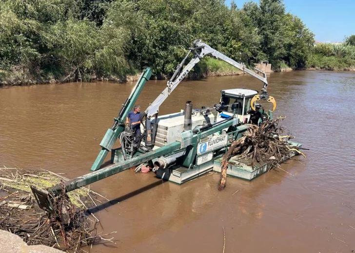 Vialidad Nacional trabaja en limpieza, retiro de residuos y dragado para mejorar el escurrimiento del agua.